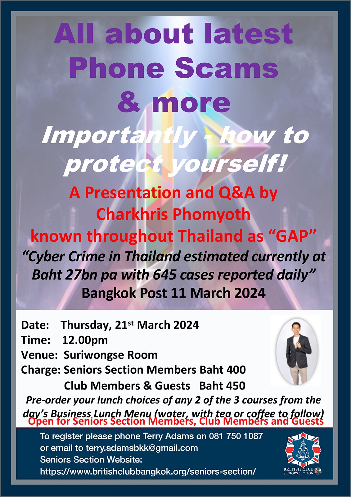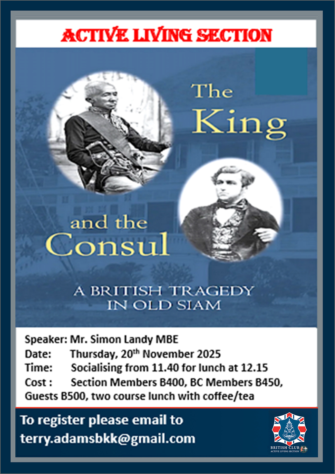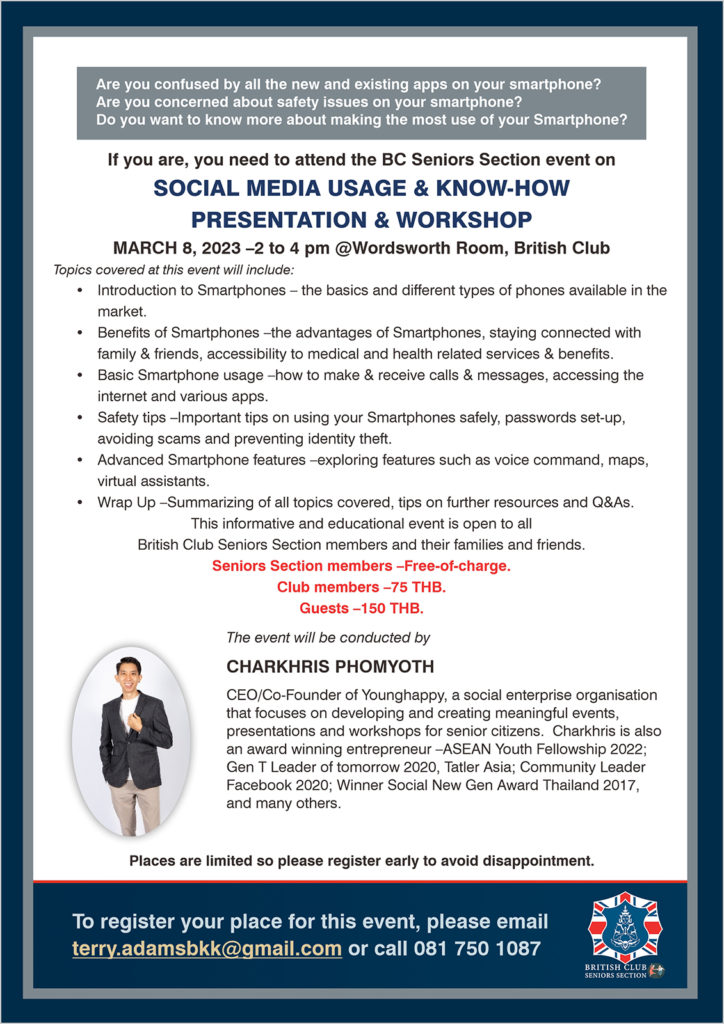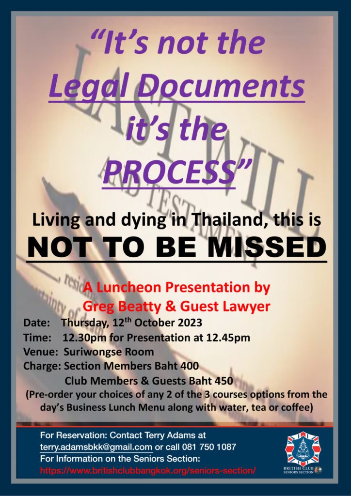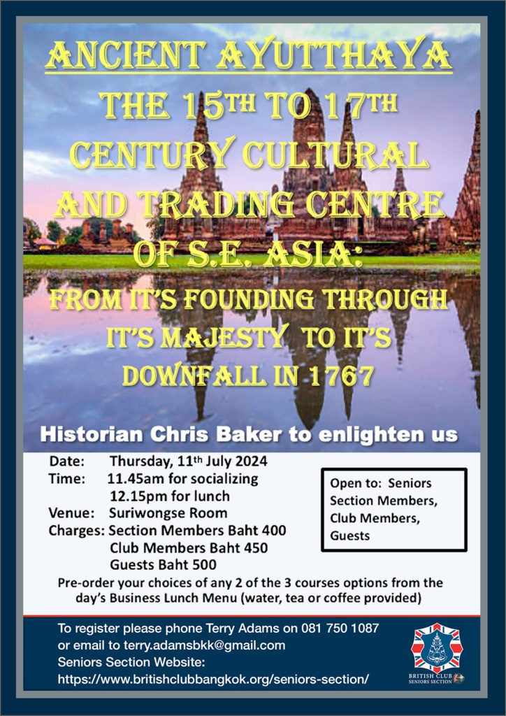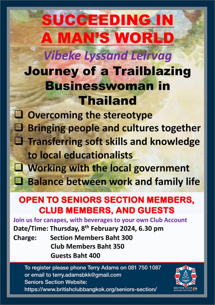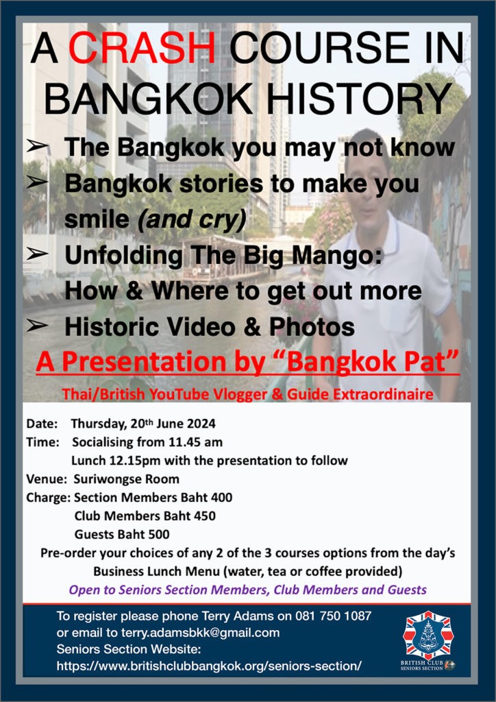 If you would like to know more, or to join the Section, please click here or contact Terry Adams, the current Section Committee Chairperson, at terry.adamsbkk@gmail.com or +66 81 750 1087.
